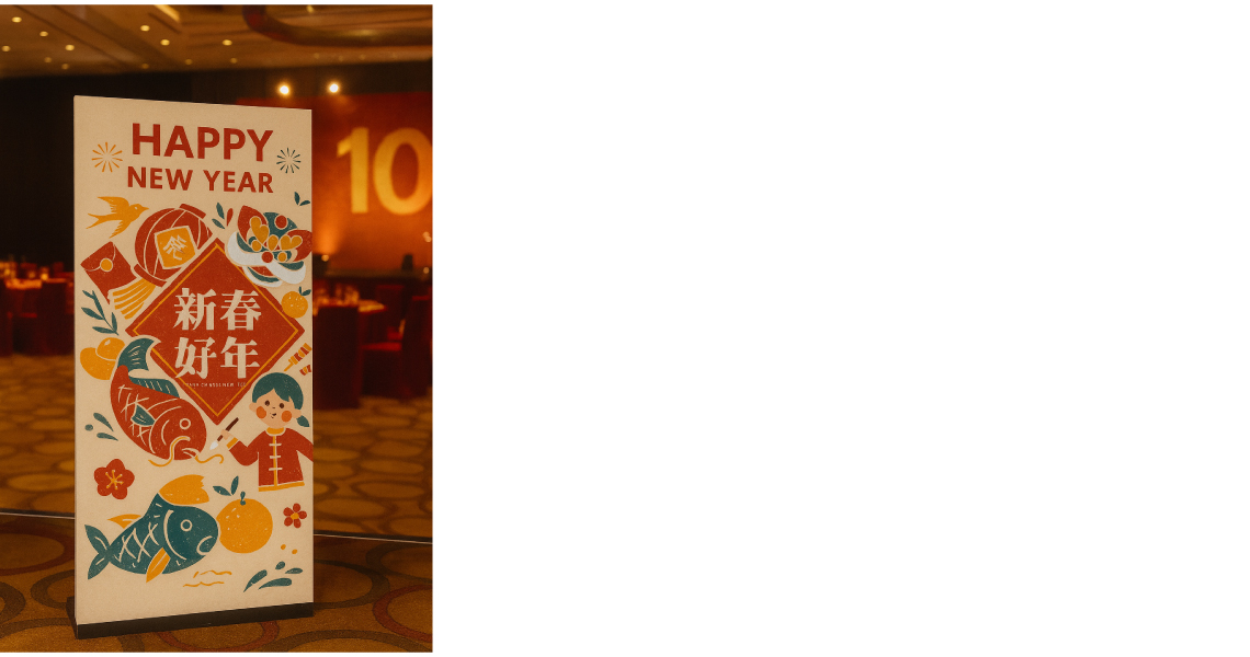 迎賓背板 / 拍照背板:大圖輸出,或是因應新年主題風格,讓員工拍照打卡更有儀式感。