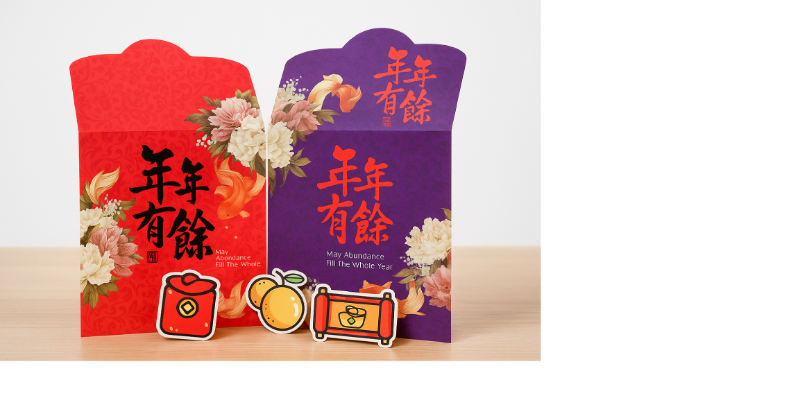 紅包袋:我們可以製作客製化燙金紅包袋,加入公司企業形象,或是彩色紅包袋增添多元喜氣。