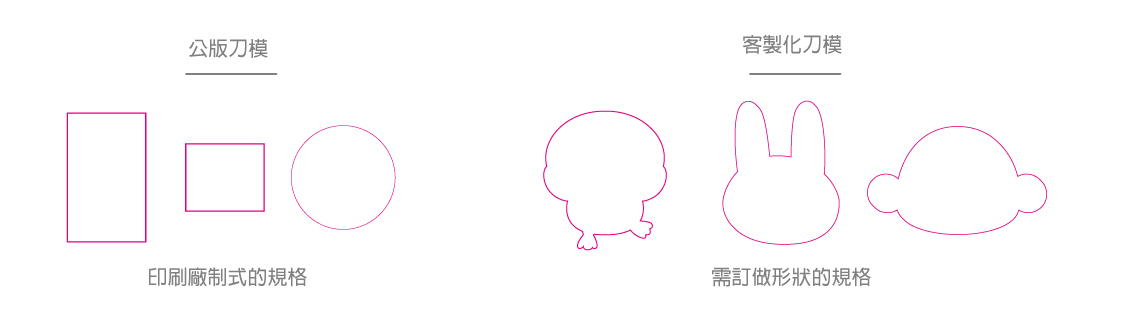 一般而言,印刷品使用公版制式刀模(也就是印刷廠本身有的刀模板),則不會額外收取費用。例如下方的圖示說明