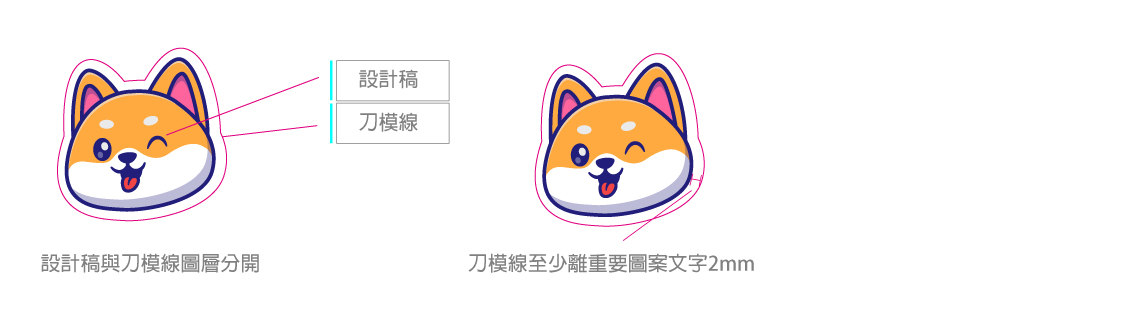 1.設計時「刀模線」需與設計圖案分開圖層