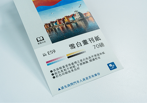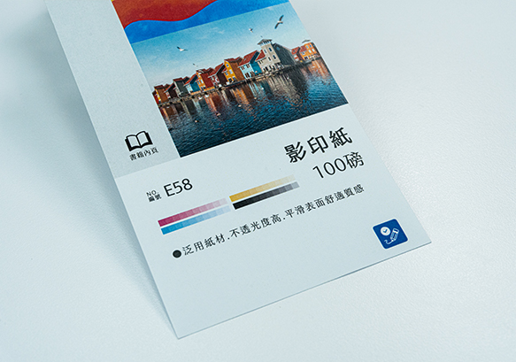 無塗面、紙面無光澤、吸墨性佳、韌性強,適用於書籍內頁、傳單菜單...等。