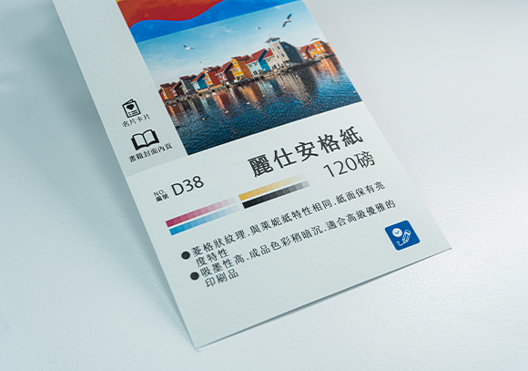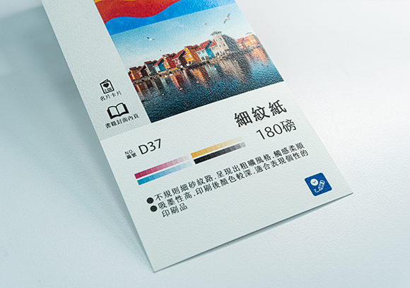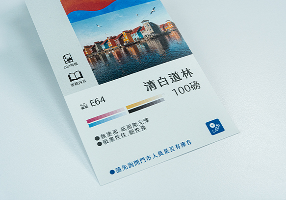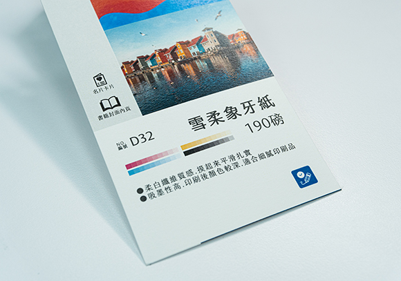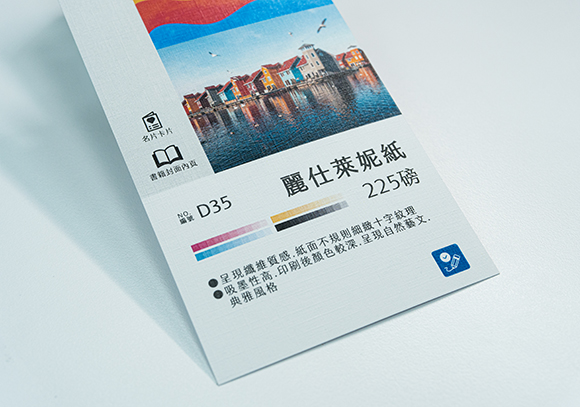 常見磅數為120磅、150磅(需先詢問門市是否備有庫存),紙張柔白有纖維質感,視覺感表面粗糙,摸起來平滑扎實,由於吸墨性高,因此印刷後顏色較深,適合細膩的印刷品。