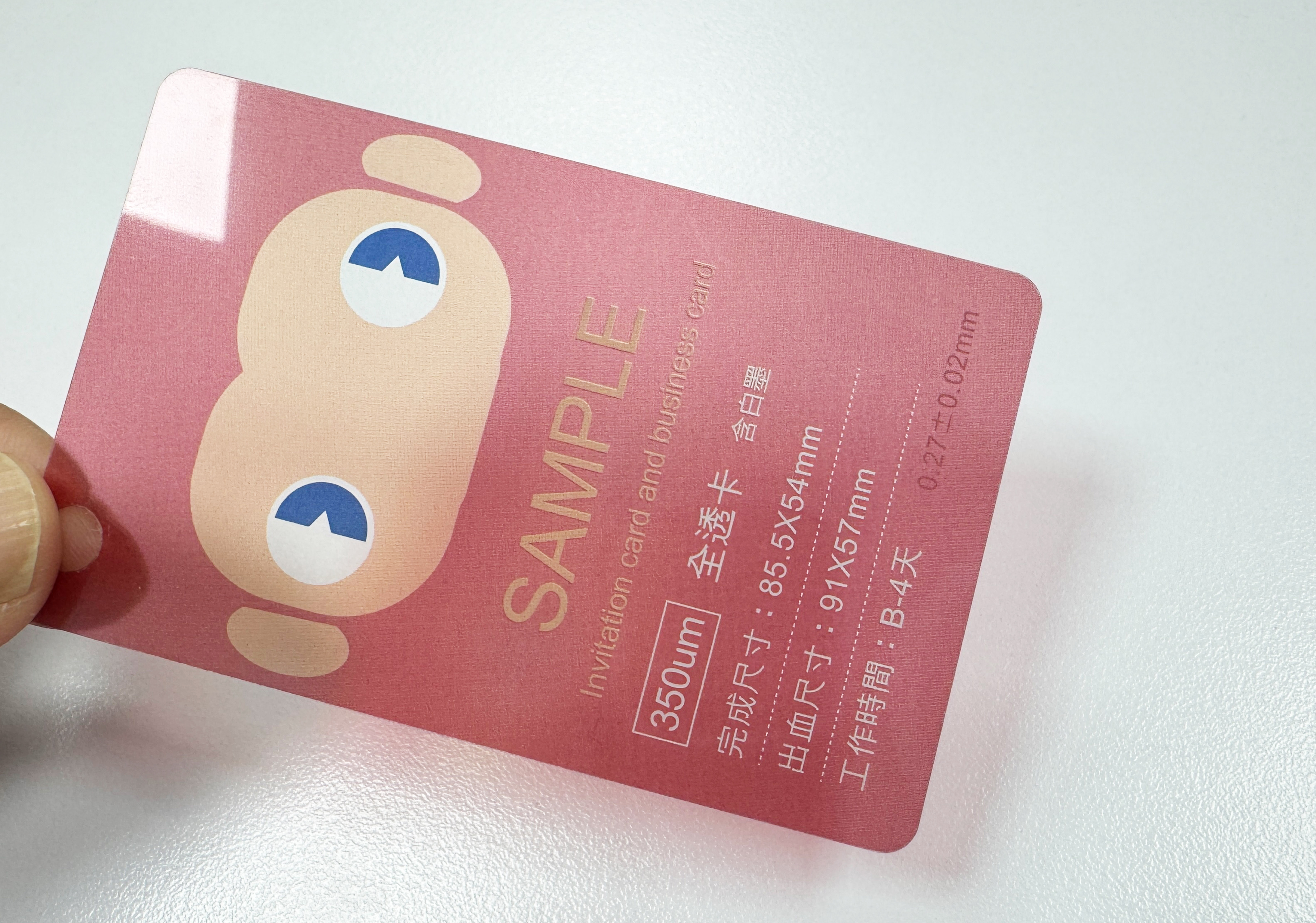 完成尺寸為85.5x54mm,約3~5個工作天(不含假日),量大需增加工作天。