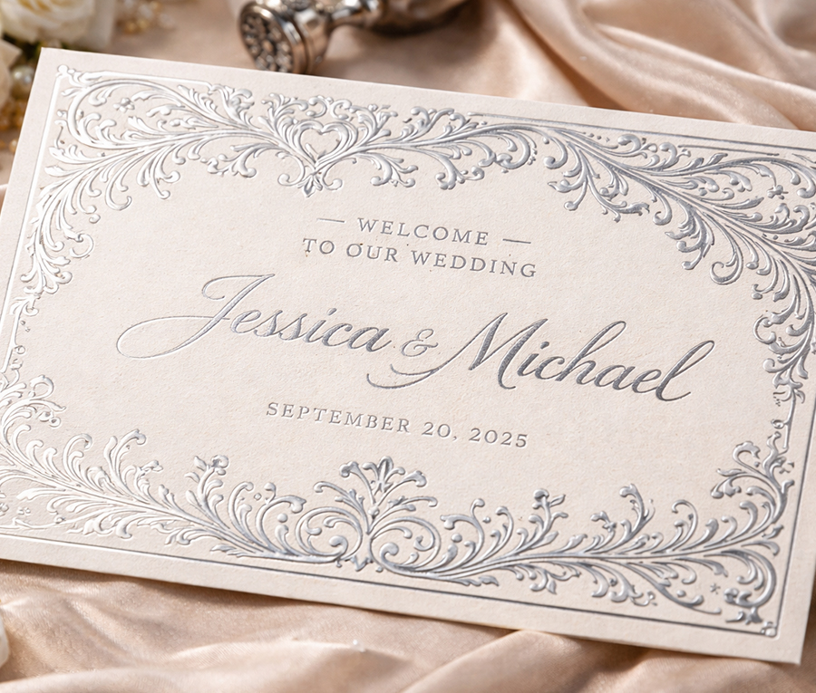 燙金不只能使用金色作為呈現,也能因紙顏色而達到不一樣的效果,不僅能作品質感大大提升,可以使印刷品表面金屬質感,