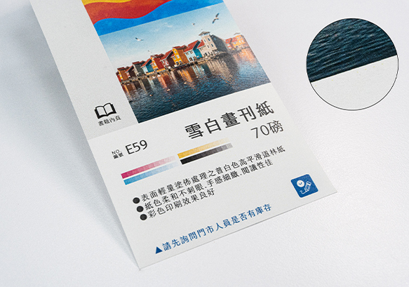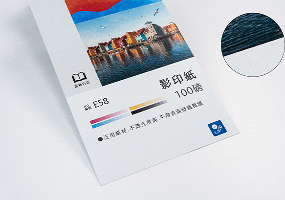 常見磅數為100磅,泛用紙材,不透光度高,平滑表面舒適質感